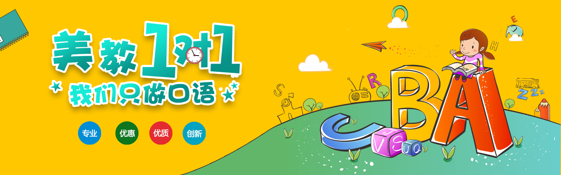 3、专注一对一口语教学。 在有限的时间里, 学生可以获得老师的全部关注并可以独立的思考。外语本质上是交流的工具, 所以我们的目标就是让孩子脱口而出说英语!