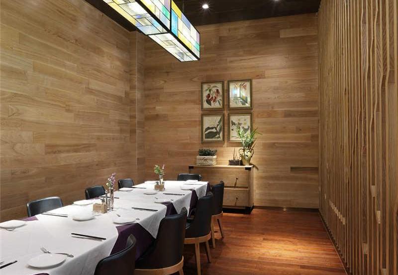 餐厅的中偏下的位置,也就是和我们腰差不多的地方,我们应该注意用一些耐磨的材料,例如木制品,玻璃等等,因为有的人就不下意识的就靠在了墙面上,这会给我们的餐厅墙面带来磨损,影响美感。