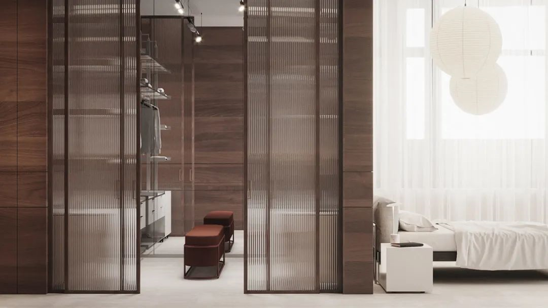 所有空间都用透明玻璃门作为隔断,让光线在空间得以延伸。