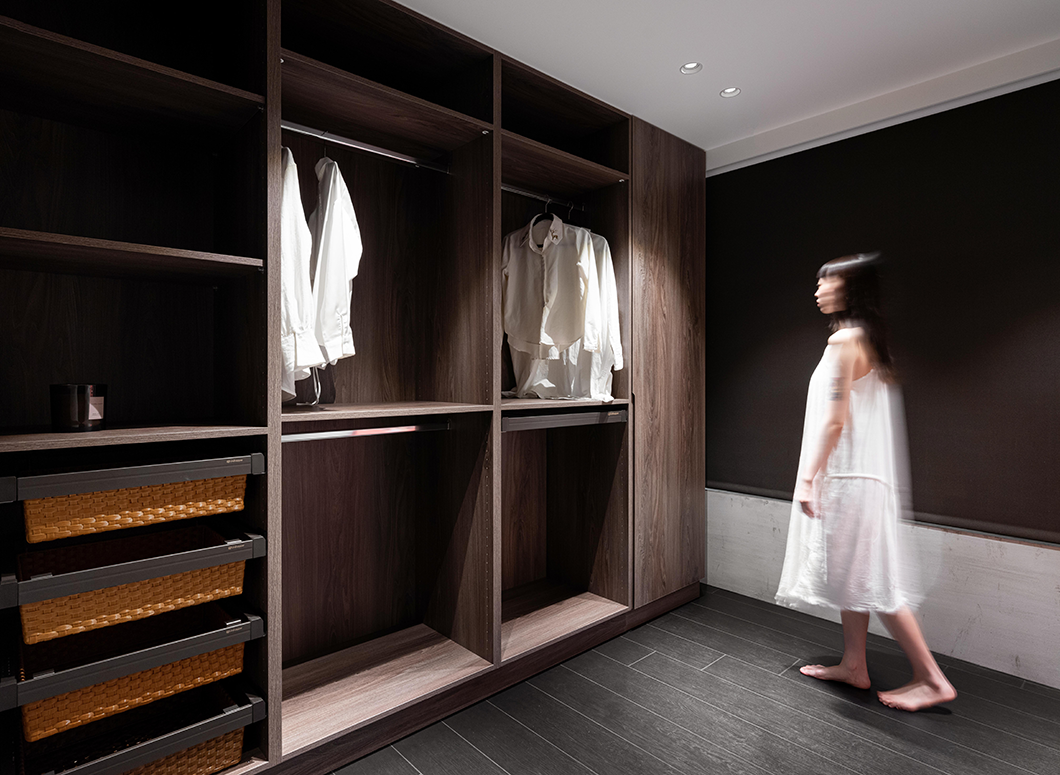 视觉上保持隐密调性,木质与条理兼具的收纳柜体,将种种的探索带进空间中。