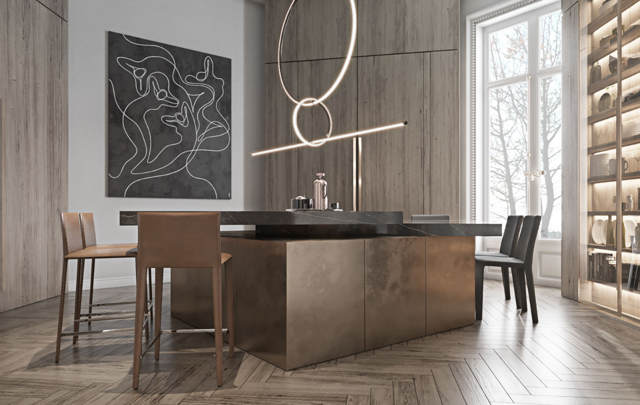 在这里,你能看到古典的花式木地板铺贴;你也能看见华丽的现代镜面玻璃,古典与现代的融合,在这套公寓几乎无缝衔接。