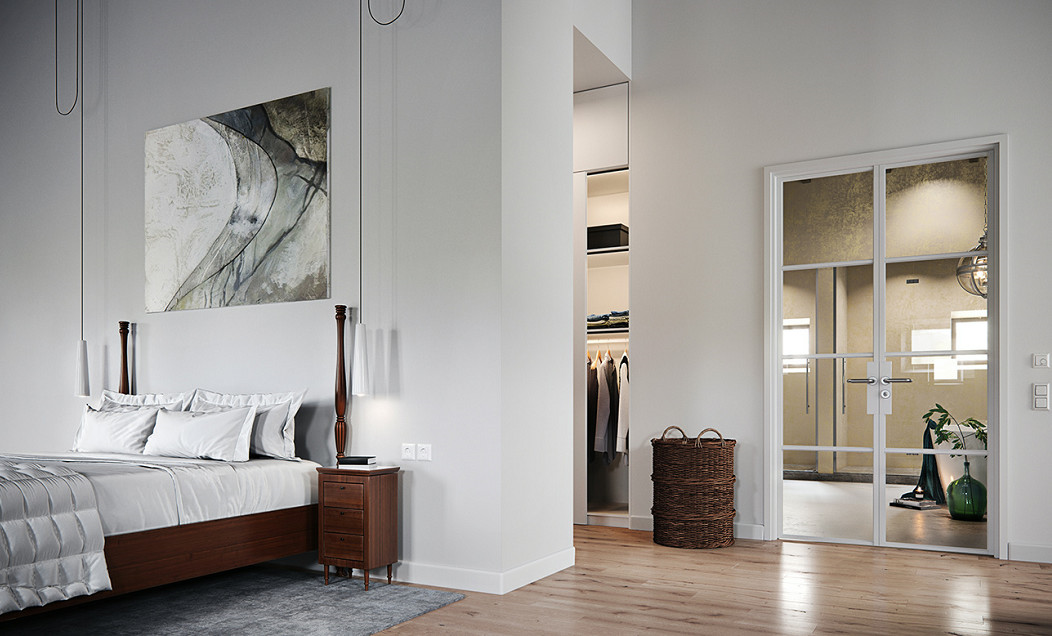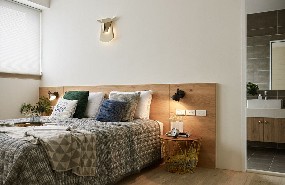 利用好卧室的拐角处来打造衣帽间,会让卧室得到更充分的利用。通道以隐形门的方式设计在卧室床尾,丝毫不影响整体。或是在卧床对面设计一个开放式的衣帽间,配上玻璃的,好看又实用~