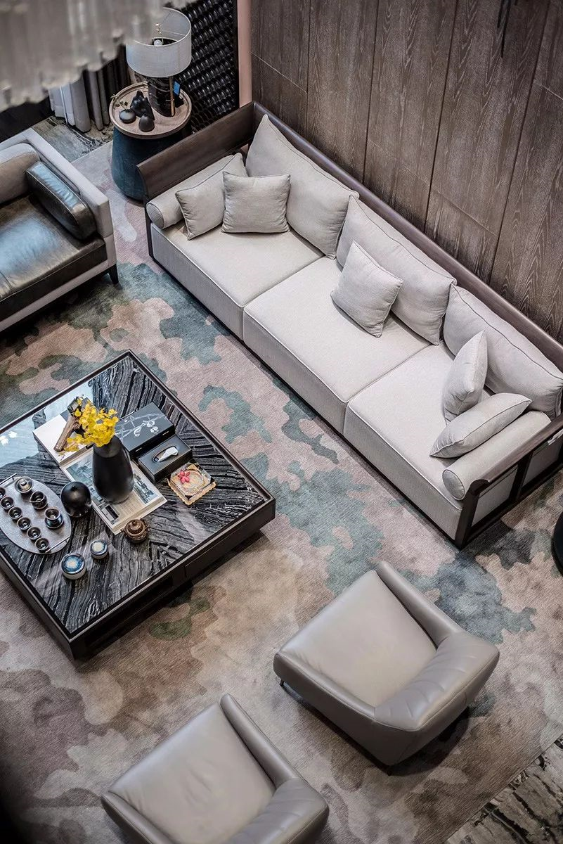 黑白交错的地毯,如笔笔洒脱的水墨,让空间氛围更显清逸灵动。