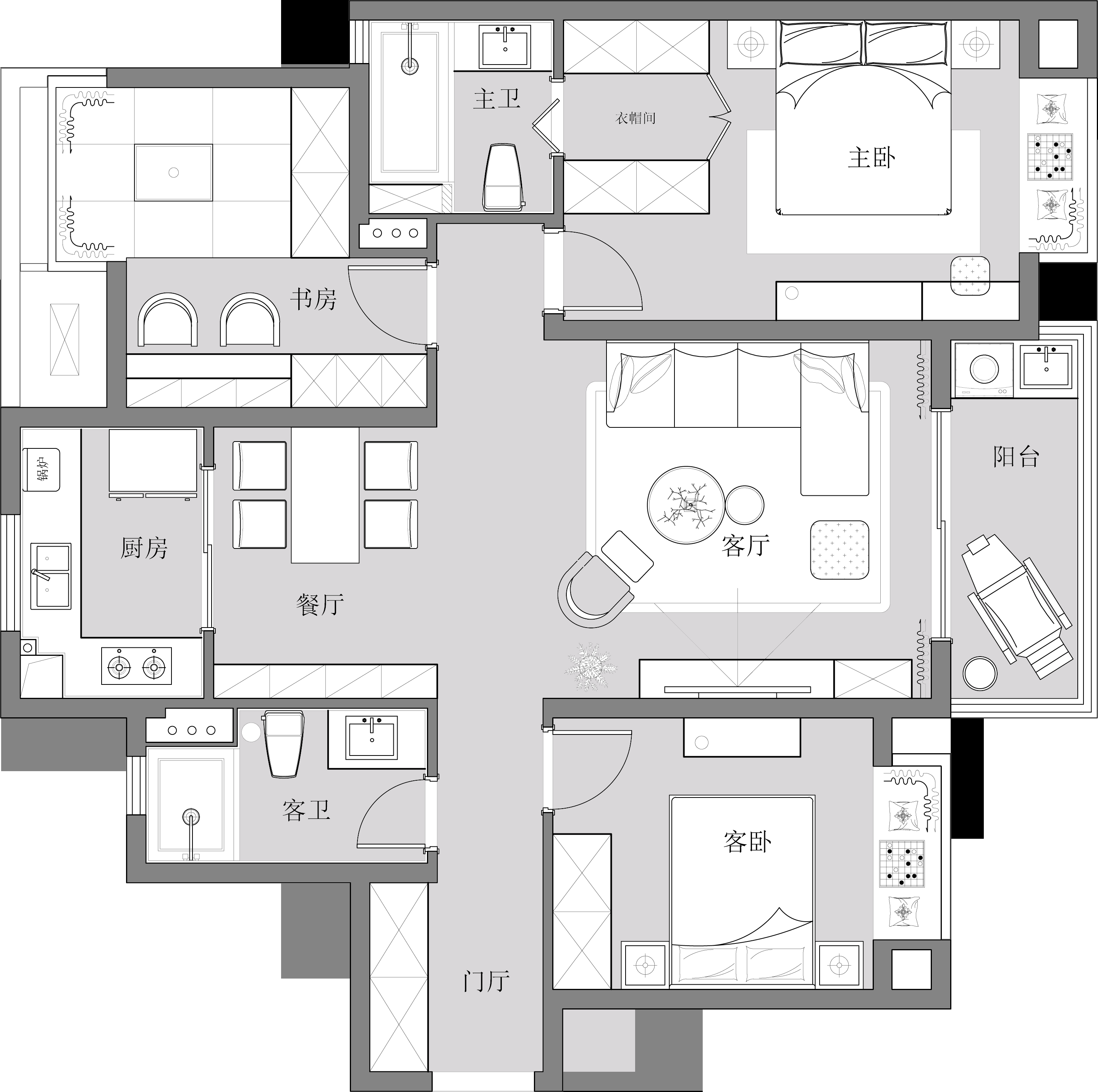 在本案中设计师在空间中通过完美的曲线,精益求精的细节处理,让整个空间展现出来了惬意和浪漫。